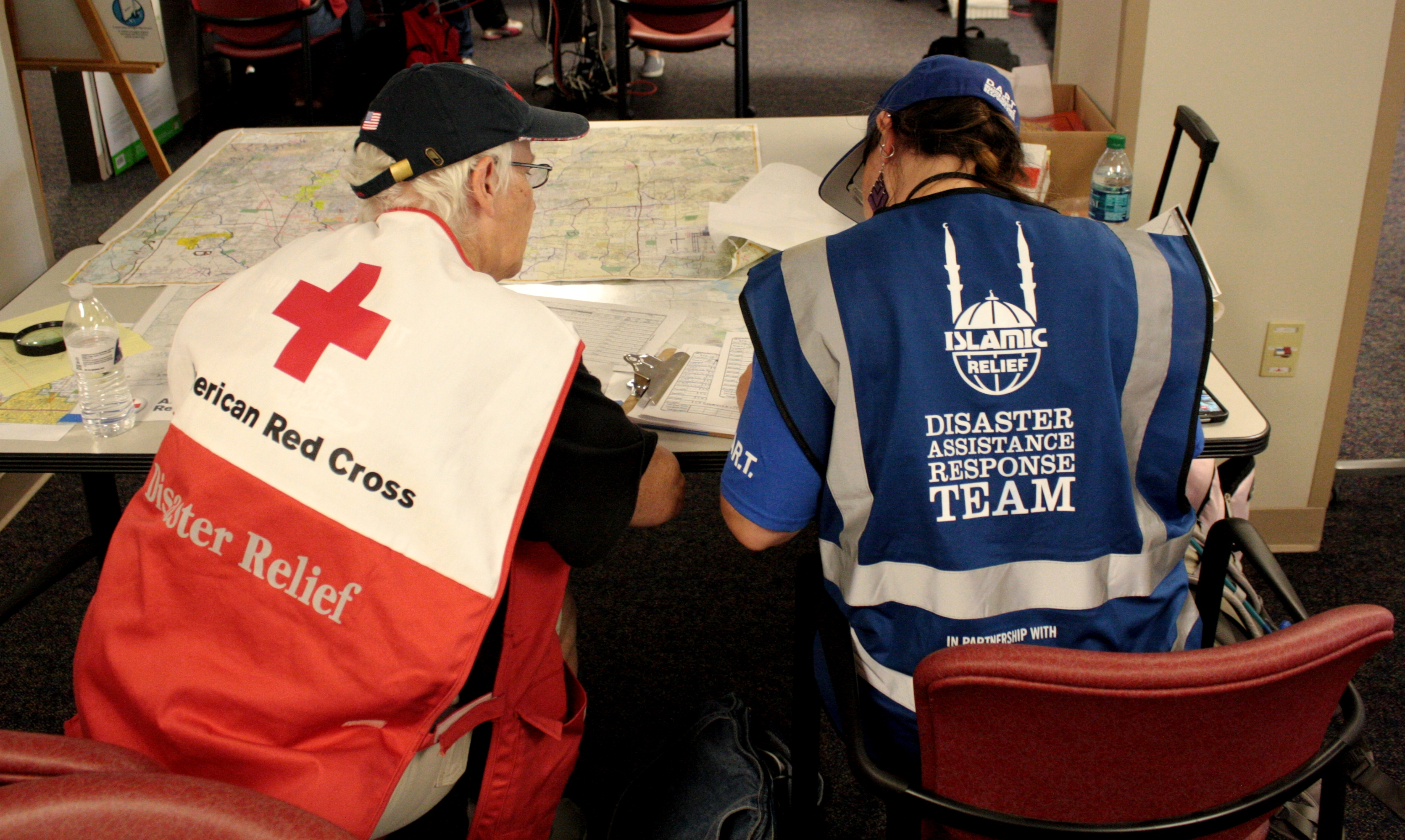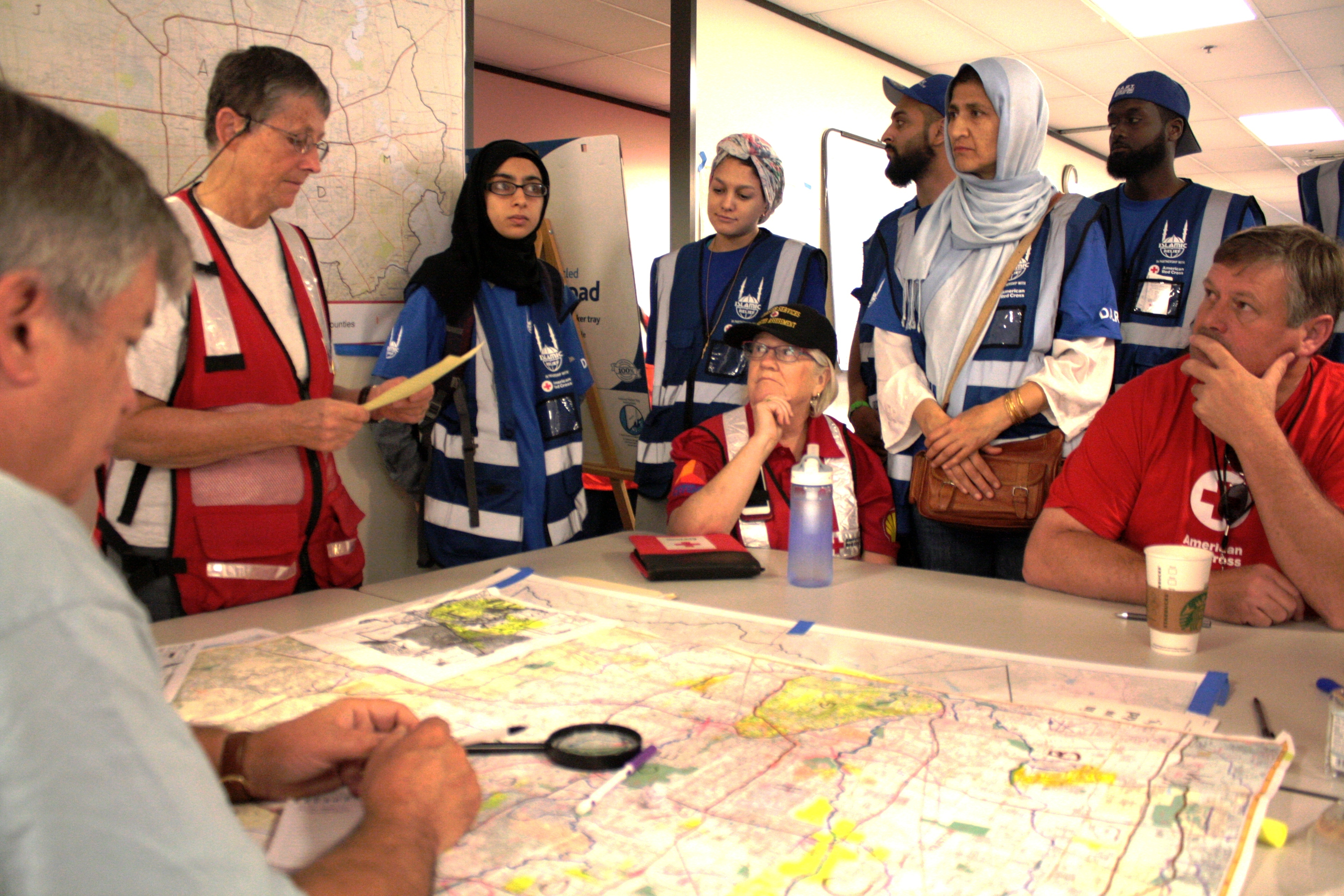 After a briefing that included well-marked maps, each Islamic member was paired with a Red Cross volunteer to go out into various sections of the city to assess the flood damage to homes.