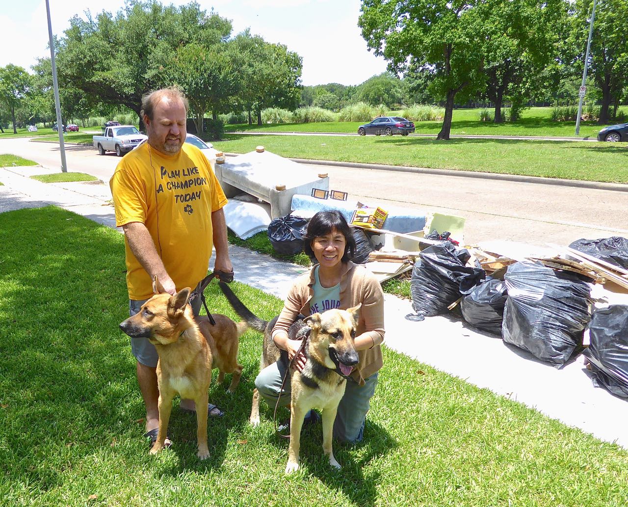 Houston residents Xiaodi Lin and her husband Robert Raphael were surprised when a group of Red Cross workers knocked on their door while they were in the midst of hauling out water-soaked drywall from their flood-damaged home. The Red Crossers where going door to door checking on residents of the neighborhood and making sure they had information about Red Cross assistance. A Red Cross Emergency vehicle came by and provided lunch.