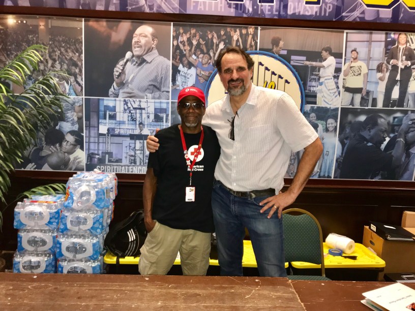“We are accepting anyone at any given time. No one is being excluded from sheltering,” said volunteer Tyler Dana, as he greets people at the main entrance. The Red Cross expects more survivors to arrive at this location that provides cots, blankets and three hot meals per day. This shelter is one of nineteen opened within the past 24 hours. Last night more than 1,200 people took advantage of sleeping in a safe, air-conditioned location for temporary respite. Anyone impacted by this flooding event can find a shelter location at redcross.org/tgcr.