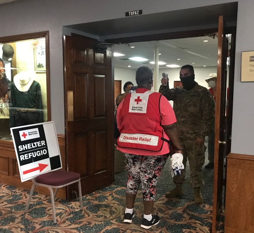 Red Cross shelters follow CDC guidelines and before entering, all volunteers and shelter residents must wear a mask, have their temperatures checked before entering and observe social distancing.