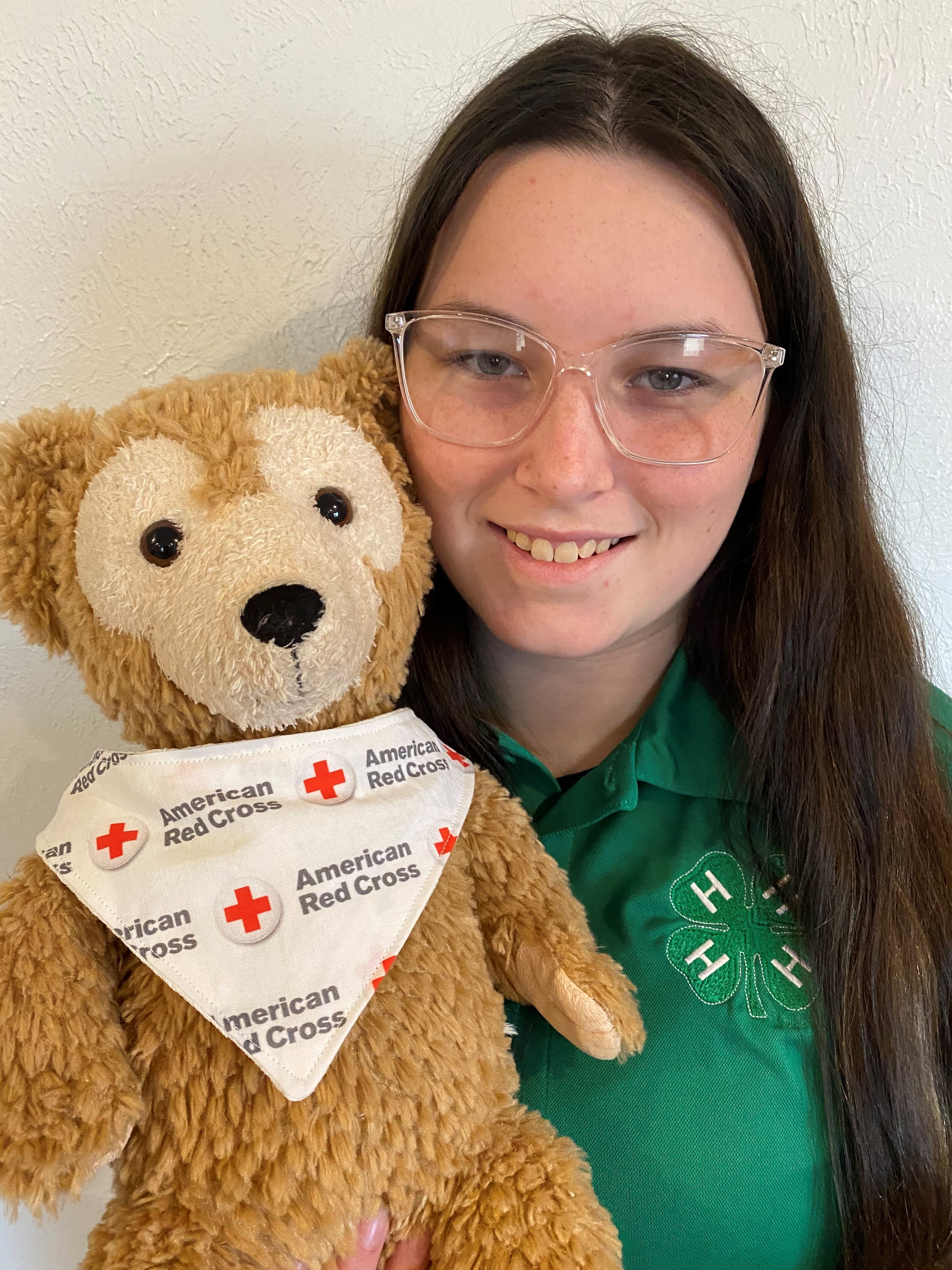 Another simple act of kindness and public service was provided by 12-year-old Grace Hobbs of Shawnee, Oklahoma. At the suggestion of her uncle, Texas Gulf Coast Region Chief Operating Officer Jake Peters, Grace took to her sewing machine and created Red Cross bandanas for each of the therapy pets. She took on the challenge as a service project for her 4-H club – which is nothing new for the North Rock Creek Elementary student.