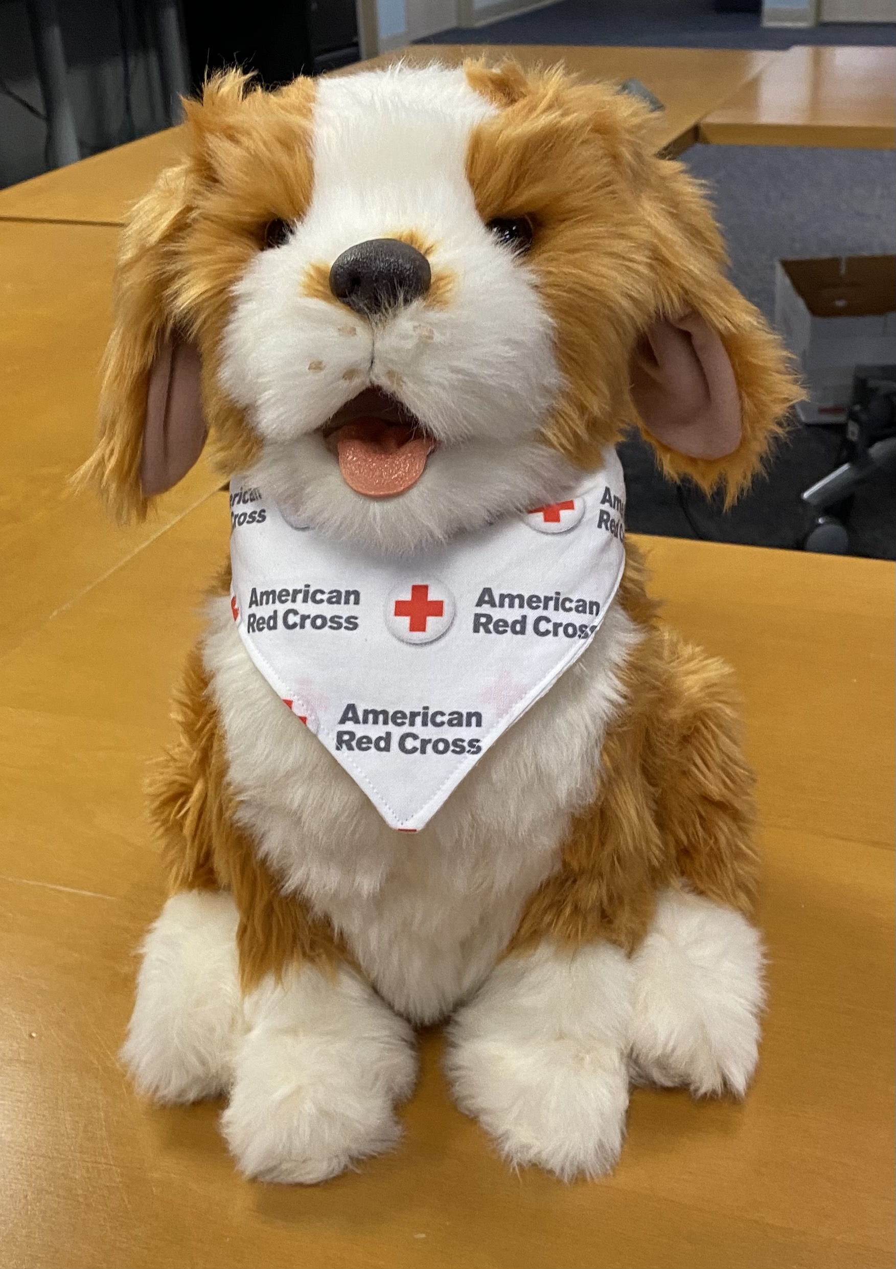 “These therapy pets are calming, soothing, and bring the patients back to a time in their lives when they felt useful and had a sense of purpose,” said Kimberly Knights, Red Cross regional Services to the Armed Forces manager and director. She noted that the robotic pets mimic many of the same acts performed by their real-life counterparts.