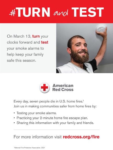 Daylight saving time begins this Sunday, March 13, and the American Red Cross Texas Gulf Coast Region reminds everyone to TURN your clocks forward one hour and TEST your smoke alarms.