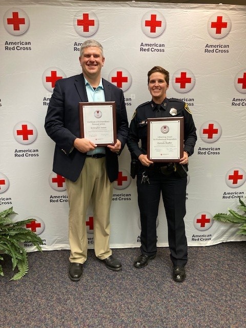 Red Cross Lifesaving Award for Professional Responders is presented for using training skills to save a life