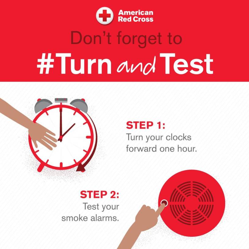 Daylight saving time begins this Sunday, March 12, and the American Red Cross Texas Gulf Coast Region reminds everyone to TURN your clocks forward one hour and TEST your smoke alarms.