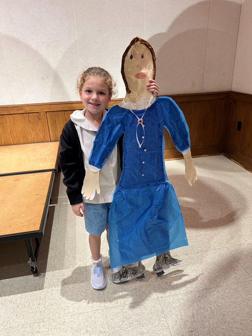 And what were the four facts Claire learned about Clara Barton? She first mentioned that Barton helped find more than 22,000 soldiers at the end of the Civil War. Claire also noted that Barton became known as “The Angel of the Battlefield,” that she founded the Red Cross in 1881, and that she led the organization for more than 20 years.