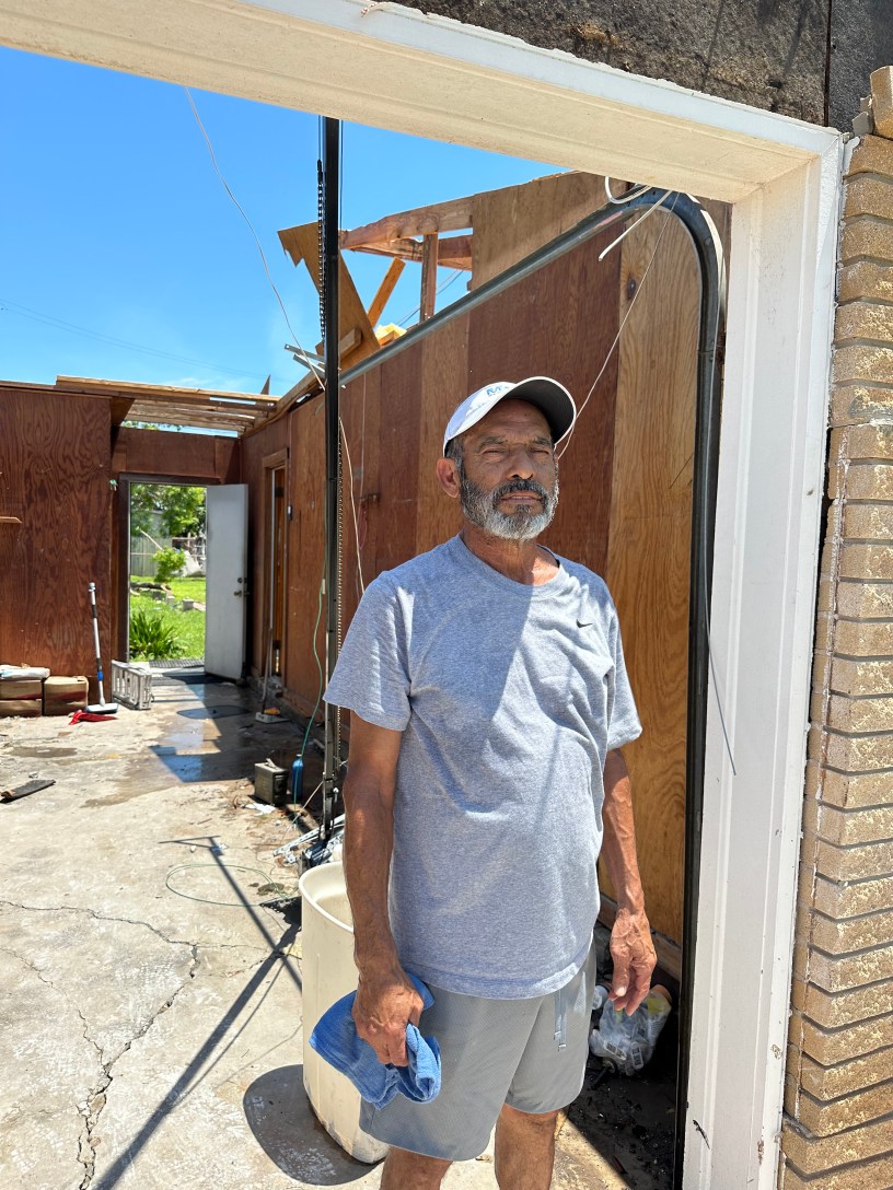Once the tornado passed Abelardo remembers crawling out of a pile of plywood and shingles that had fallen on top of him during the storm. Suddenly, he felt a chill run down his body and when he looked up, he saw that his roof was gone.