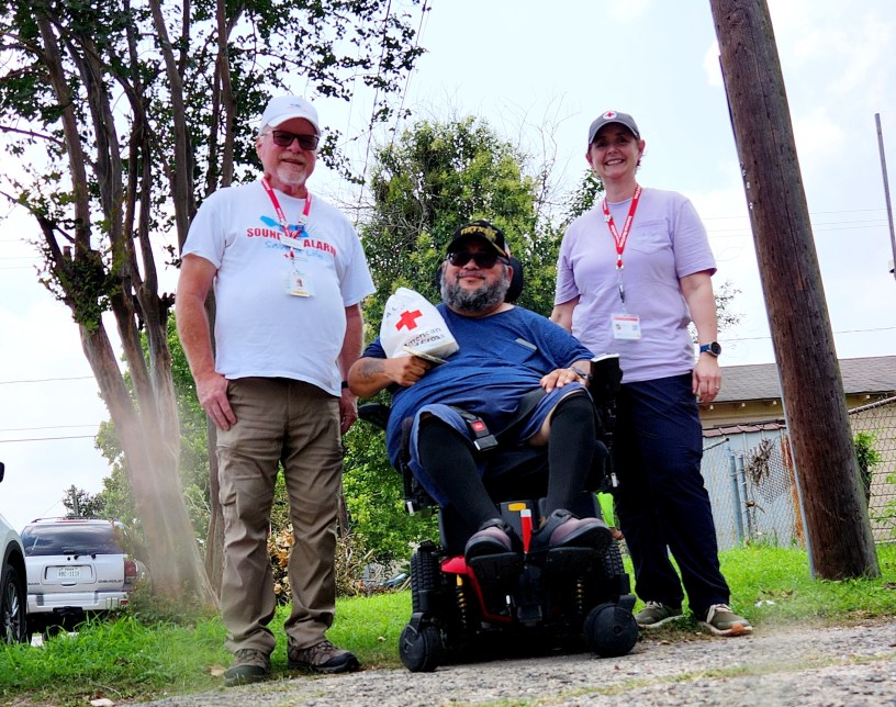 “The DAT volunteers brought me the tarps,” Jose narrated. “And I said, you know what? I took communications many years ago. Let’s take a picture. It’ll end up on the Red Cross page on the Volunteer Connections.” And with pride ringing in his voice he said, “I posted it with the heading ‘The Red Cross takes care of one of their own.’”
