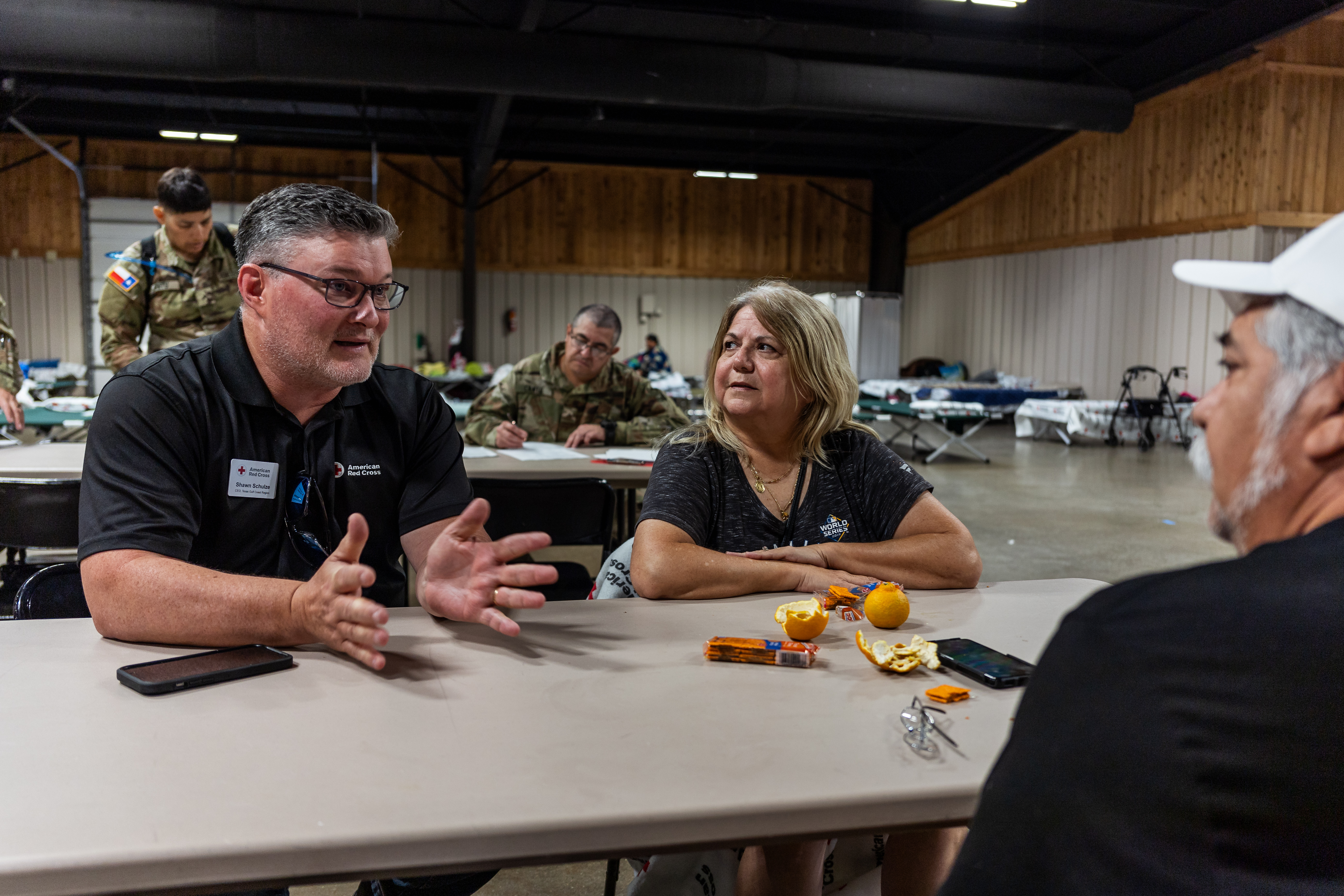 Red Cross Gulf Coast CEO Shawn Schulze sat with the Aparicio’s to listen to their shelter experience and address any concerns.