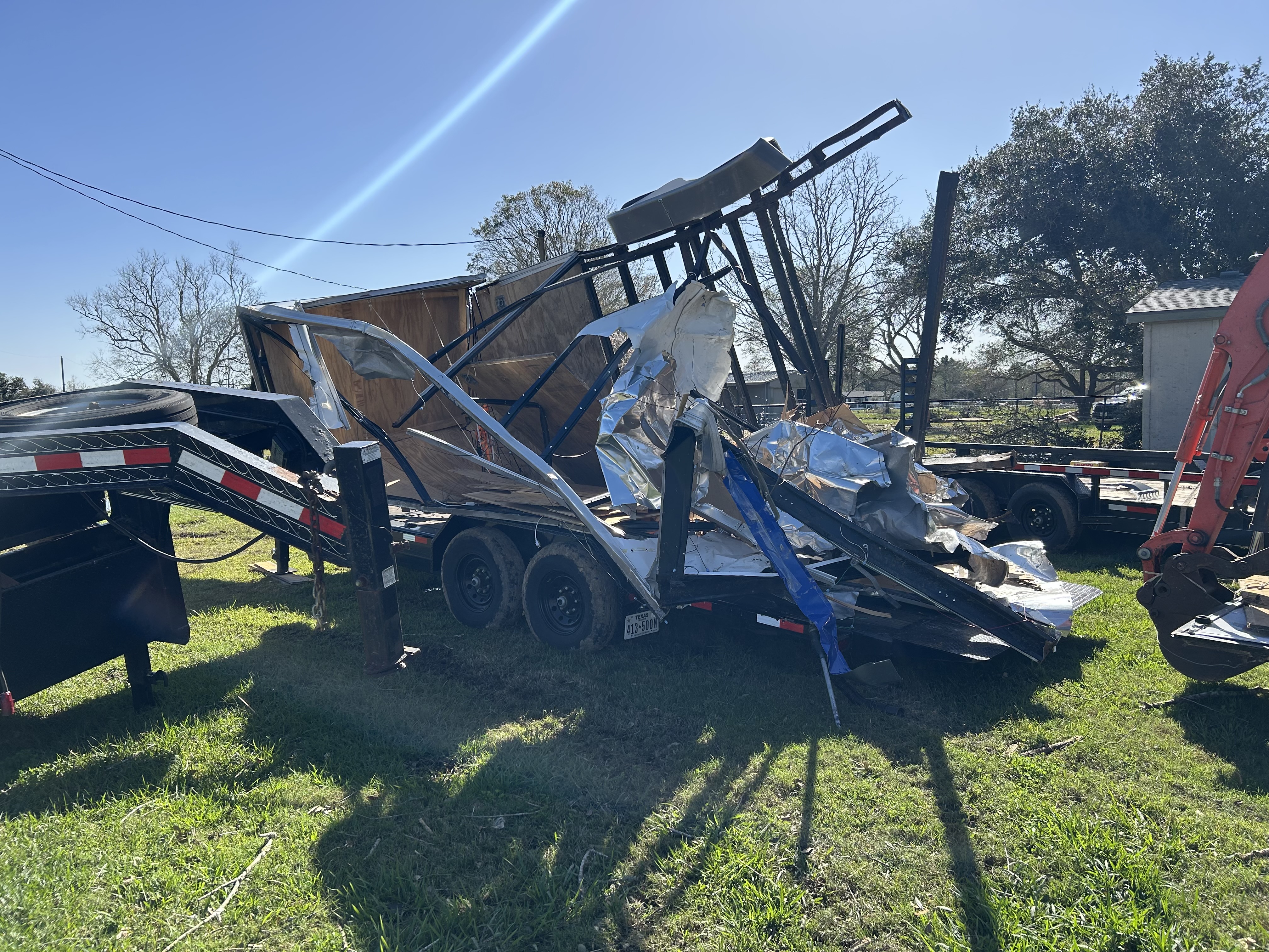 The Moody’s mobile home had flown to the neighbors property together with part of their fence. Most of their windows were shattered. There was no telling if the big trees on either side of the house prevented something way worse from happening, given that their nephew was at home at the time.